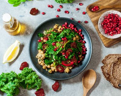 Veganer Grünkohl mit Kichererbsen und Granatapfel